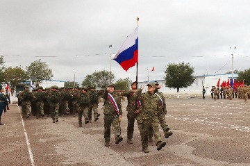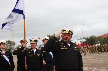 На строевой плац, где были построены контингенты, участвующие в учении, были внесены Боевые Знамена 8-й гвардейской мотострелковой Режицкой ордена Ленина, Краснознаменной, ордена Суворова дивизии имени И.В.Панфилова, которые затем при торжественном прохождении знаменщики пронесли в едином строю с флагами Организации и государств.
