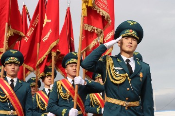 На строевой плац, где были построены контингенты, участвующие в учении, были внесены Боевые Знамена 8-й гвардейской мотострелковой Режицкой ордена Ленина, Краснознаменной, ордена Суворова дивизии имени И.В.Панфилова, которые затем при торжественном прохождении знаменщики пронесли в едином строю с флагами Организации и государств.