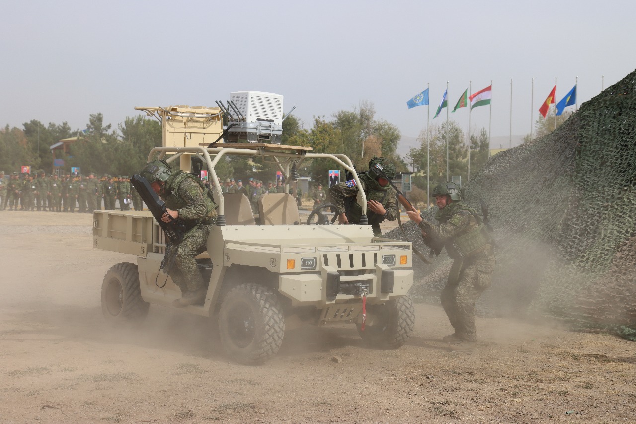 Завершились инструкторско-методические занятия практическим показом действий дежурных сил и средств по ПВО при отражении ударов БпЛА условного противника по пункту управления Коллективных миротворческих сил ОДКБ.