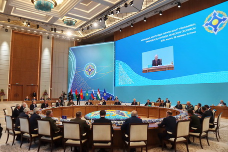 Заседание прошло в узком составе и в формате пленарного заседания. Главы государств подробно обсудили состояние и перспективы развития международной и региональной безопасности, ее влияние на безопасность государств – членов Организации Договора о коллективной безопасности, подвели итоги работы Организации в межсессионный период.